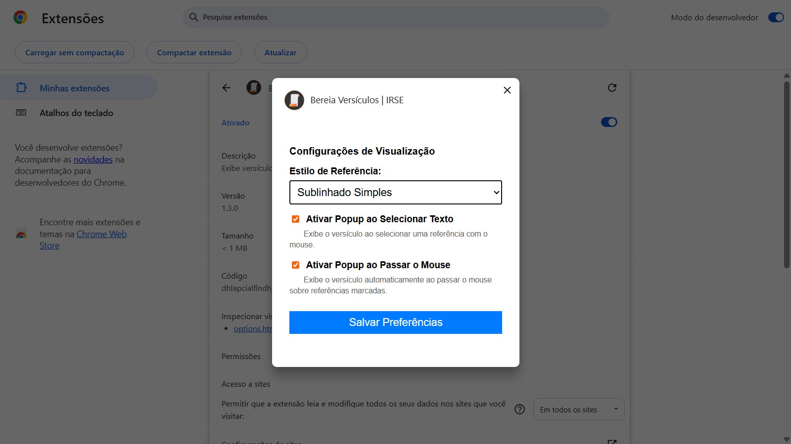 Ativar Pop–up ao Passar o Mouse: — mostra automaticamente o versículo ao passar o cursor sobre referências marcadas.