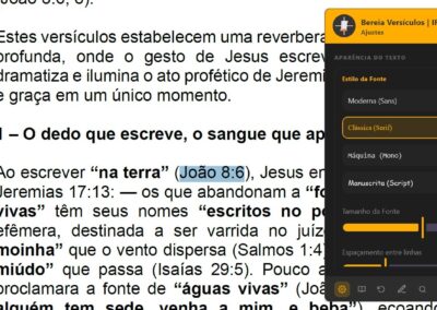 Ativar Popup ao Passar o Mouse: — exibe o versículo automaticamente ao passar o cursor sobre referências marcadas. Se desativado, será necessário clicar na referência para exibir o versículo.